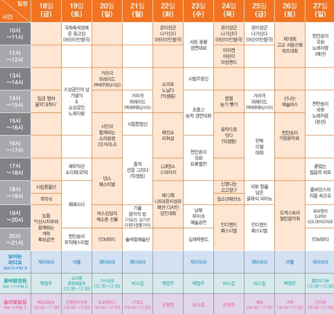 제21회 익산 천만송이 국화축제 공연일정