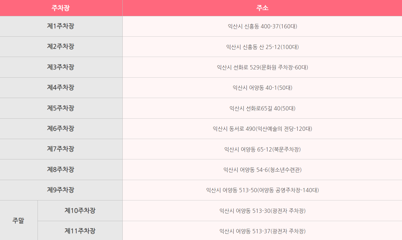 제21회 익산 천만송이 국화축제 주차 안내
