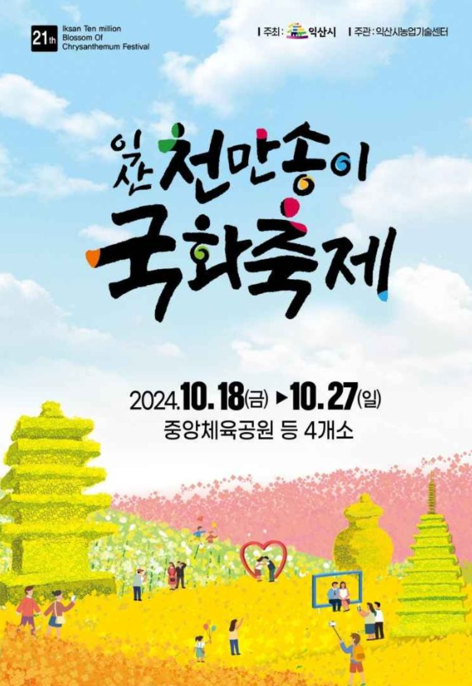 세계유산도시 익산에서 펼쳐지는 제21회 익산 천만송이 국화축제에 여러분을 초대합니다. 그리고 이 특별한 축제를 더욱 빛내줄 초대가수들의 열정적인 공연도 함께 준비되어 있습니다. 축제의 흥을 한층 더 끌어올려 줄 K-팝 스타들과 함께하는 시간, 절대 놓치지 마세요!
