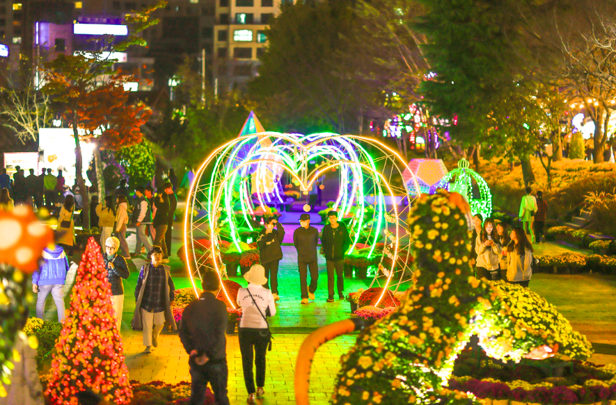 선선한 가을 날씨를 즐기려 밤마실에 나설 시민들을 위해 야간경관 조성에도 많은 노력을 기울였다. 이번 축제는 국화작품을 더 자연스럽게 감상할 수 있도록 화려한 조명 대신 전시장 조도를 조정해 관람객의 몰입도를 높였다.